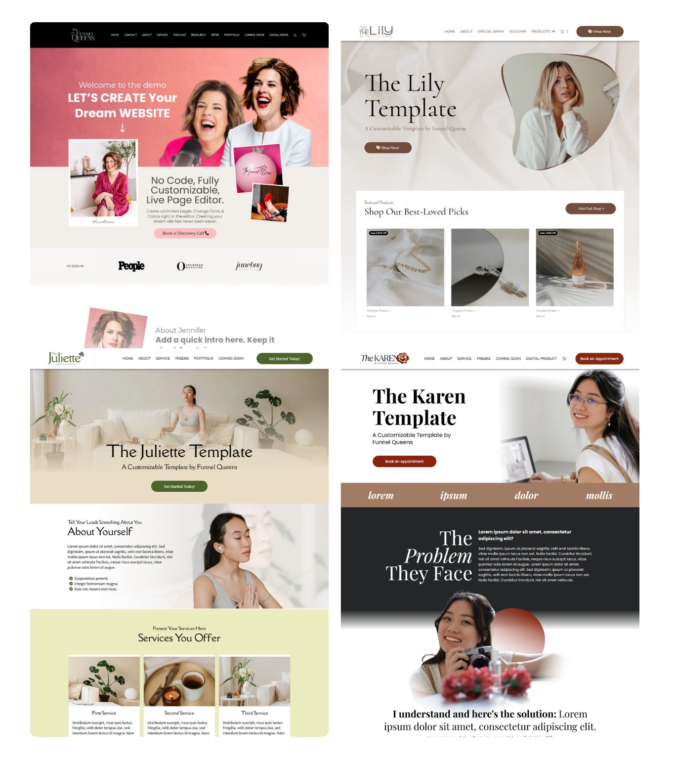 These aren't marketplace templates designed for everyone. They're built specifically for The Funnel Queens platform, for women