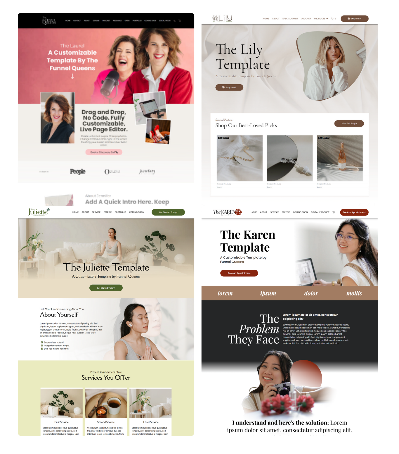 Every template is built for The Funnel Queens platform. Pick the one that fits. Make it yours.